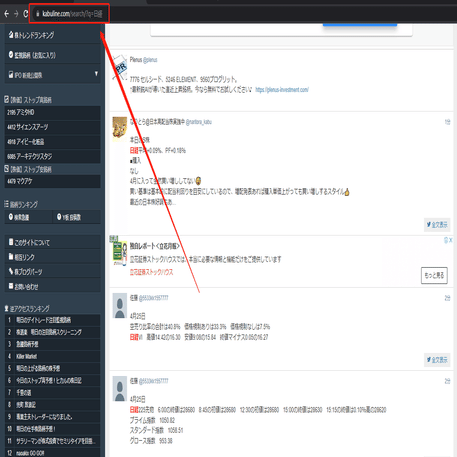 今回は株関連ツイッター検索『日経』ページを例として、スクレイピング方法を紹介します。まず、URLをコピーしてください。