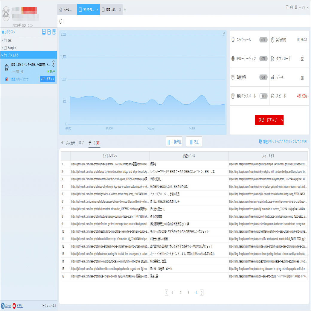 必要に応じて、スケジュール、アンチブロック、自動エクスポート、写真のダウンロード、スピードブーストを設定できます。サーバーに負荷しないように、遅延時間を設定してください。5秒以上を推薦します。スクレイピングタスクを配置する方法については、下記のチュートリアルをご参照ください。