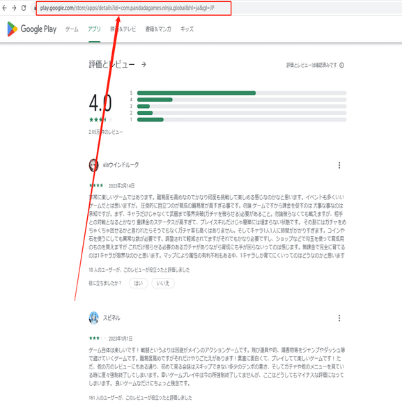 今回はある人気ゲームのレビュー一覧ページを例として、スクレイピング方法を紹介します。まず、URLをコピーしてください。