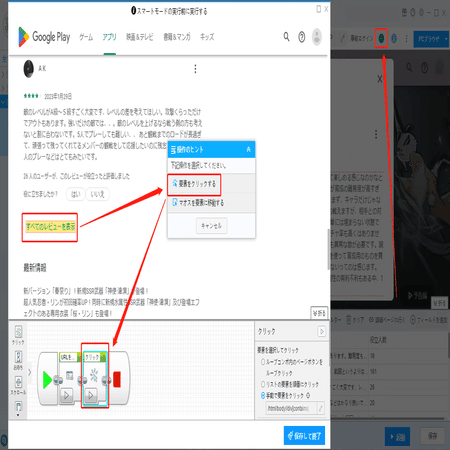 ソフトウェアの右上の緑ボタンをクリック、事前操作画面に「クリック」コンポーネントを追加し、すべてのレビューを表示できます。