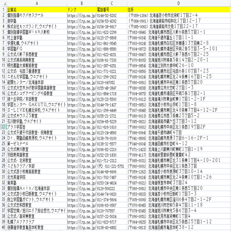 電話帳!都道府県別でiタウンページからデータをスクレイピング