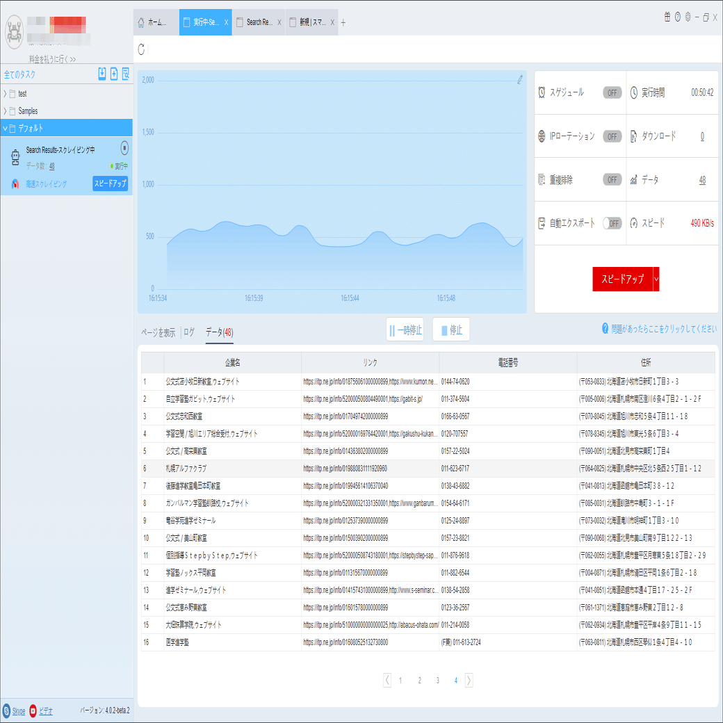 必要に応じて、スケジュール、アンチブロック、自動エクスポート、写真のダウンロード、スピードブーストを設定できます。サーバーに負荷しないように、遅延時間を設定してください。5秒以上を推薦します。スクレイピングタスクを配置する方法については、下記のチュートリアルをご参照ください。