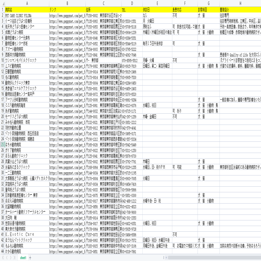 ペット健康!PEPPYから動物病院の情報をスクレイピングする