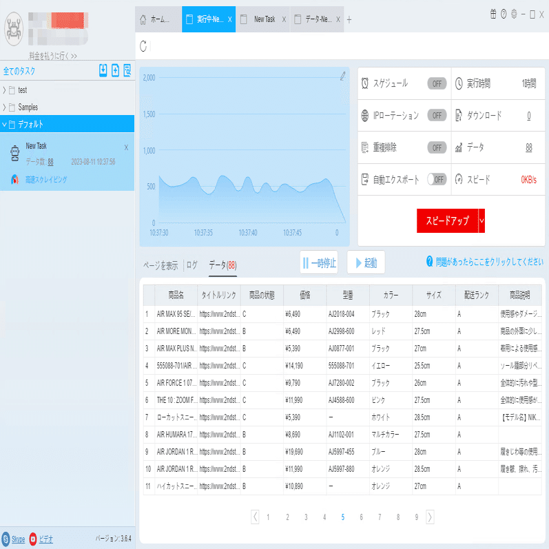 必要に応じて、スケジュール、アンチブロック、自動エクスポート、写真のダウンロード、スピードブーストを設定できます。サーバーに負荷しないように、遅延時間を設定してください。5秒以上を推薦します。スクレイピングタスクを配置する方法については、下記のチュートリアルをご参照ください。