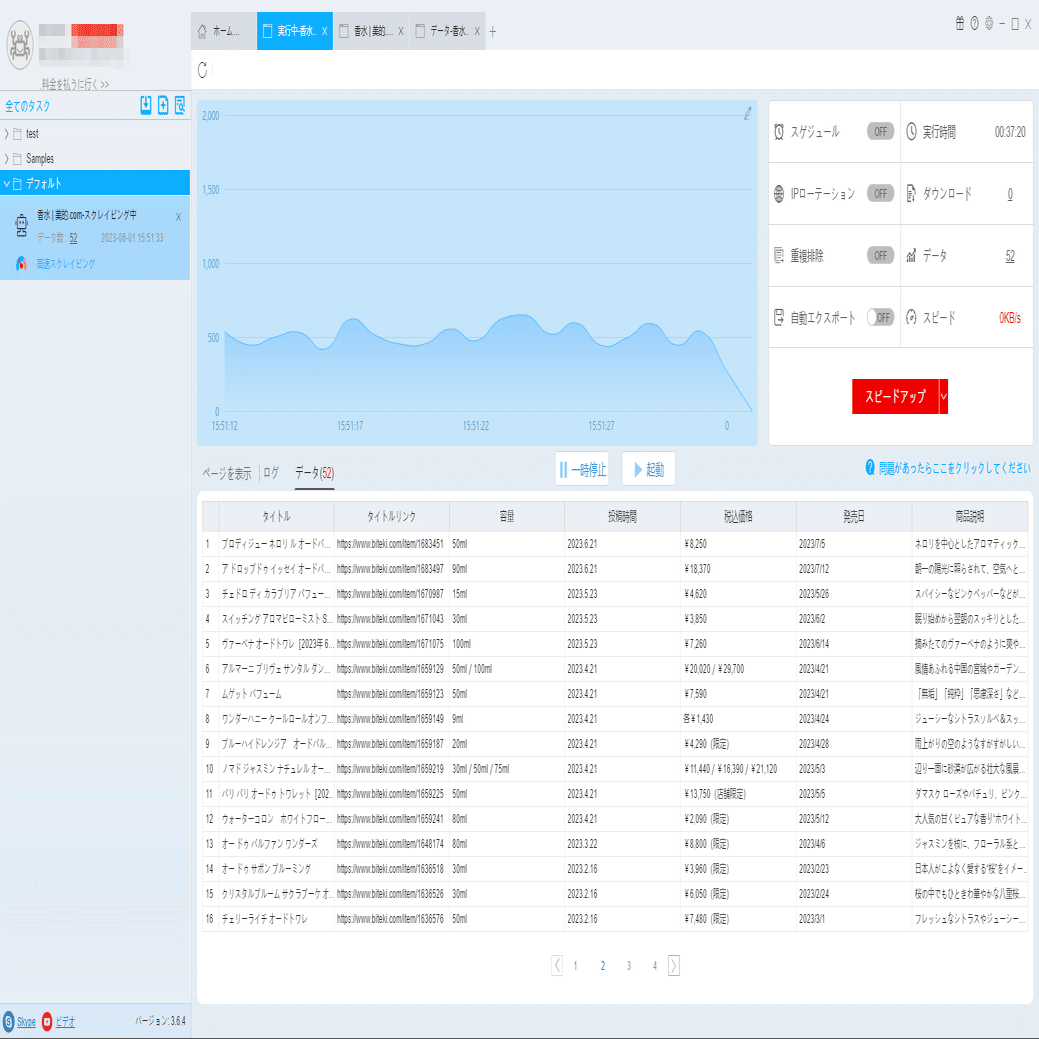 必要に応じて、スケジュール、アンチブロック、自動エクスポート、写真のダウンロード、スピードブーストを設定できます。サーバーに負荷しないように、遅延時間を設定してください。5秒以上を推薦します。スクレイピングタスクを配置する方法については、下記のチュートリアルをご参照ください。