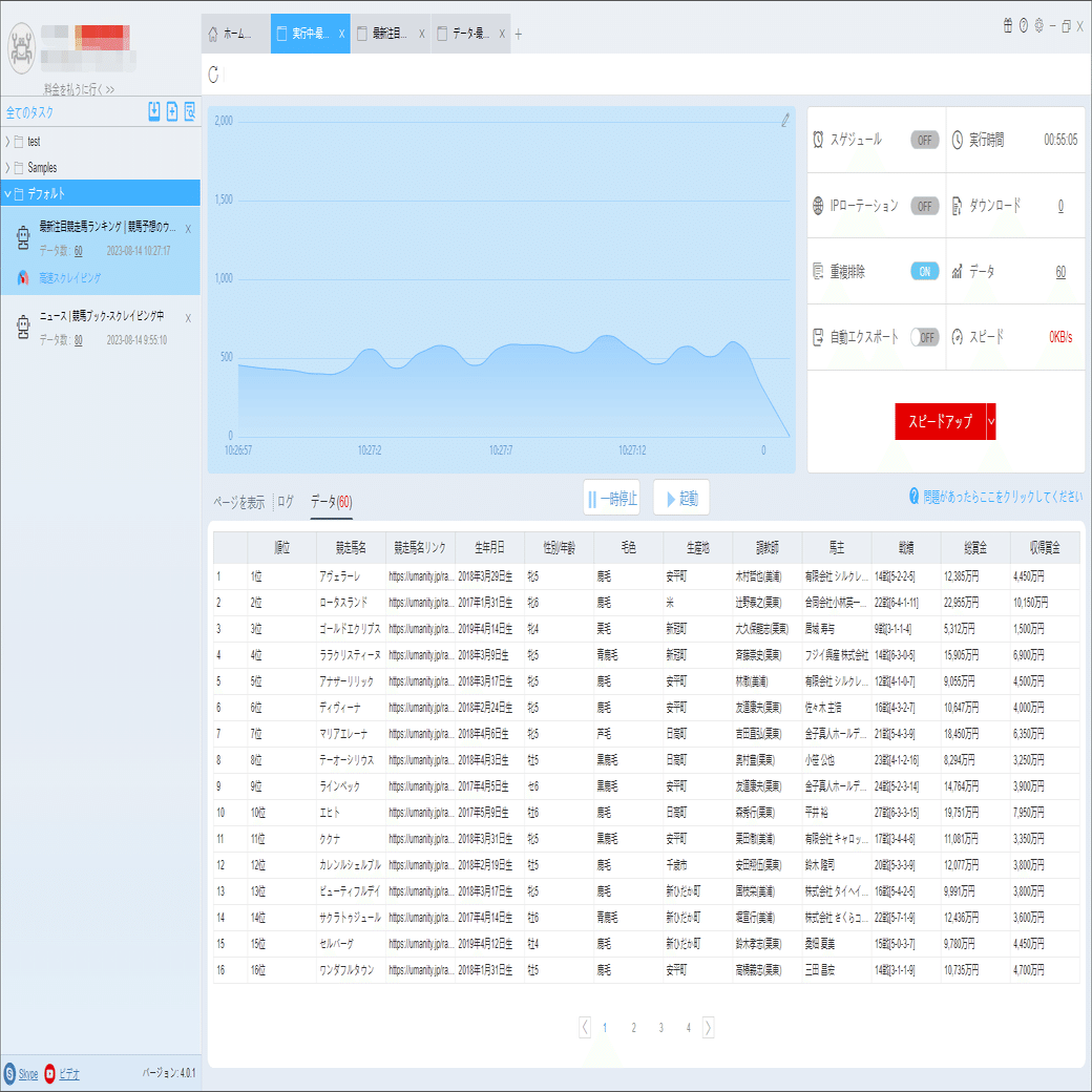 必要に応じて、スケジュール、アンチブロック、自動エクスポート、写真のダウンロード、スピードブーストを設定できます。サーバーに負荷しないように、遅延時間を設定してください。5秒以上を推薦します。スクレイピングタスクを配置する方法については、下記のチュートリアルをご参照ください。