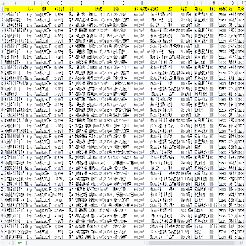不動産・物件!ナカジツから空地の情報をスクレイピングする