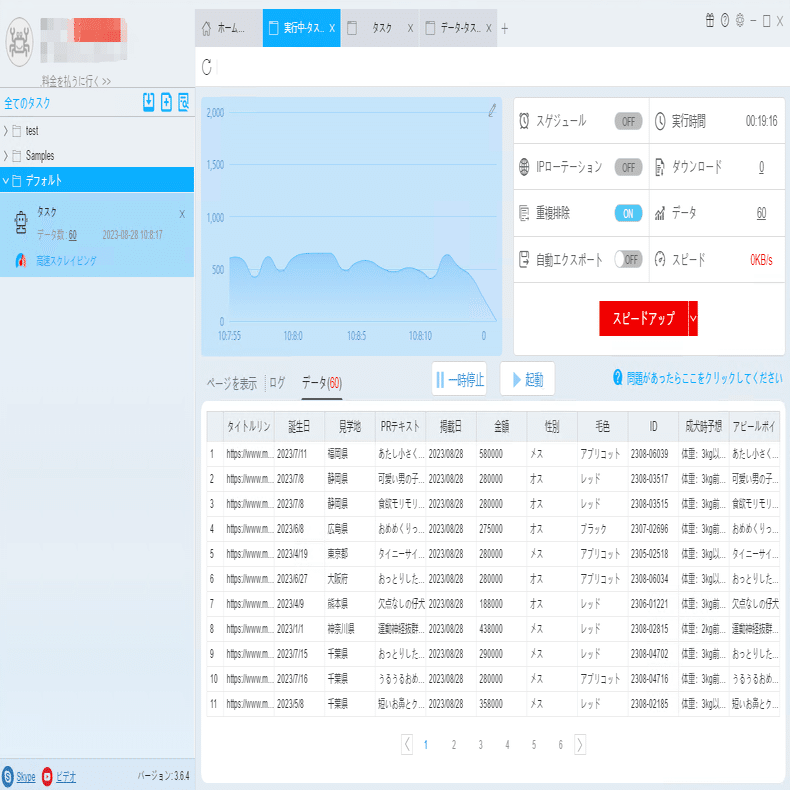 必要に応じて、スケジュール、アンチブロック、自動エクスポート、写真のダウンロード、スピードブーストを設定できます。サーバーに負荷しないように、遅延時間を設定してください。5秒以上を推薦します。スクレイピングタスクを配置する方法については、下記のチュートリアルをご参照ください。
