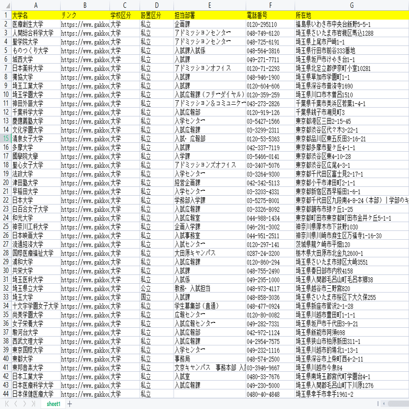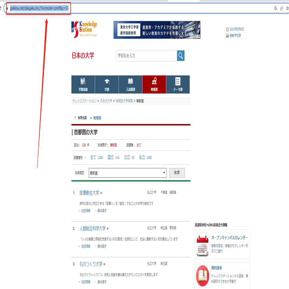 日本の大学!ナレッジステーションから学校情報をスクレイピング