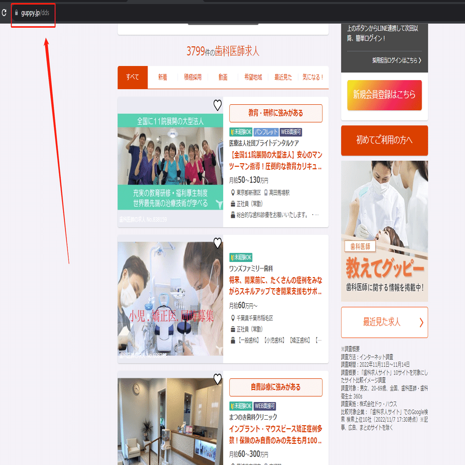 今回は歯科医師求人をキーワードとして、その検索結果一覧ページのスクレイピング方法を紹介します。まず、URLをコピーしてください。