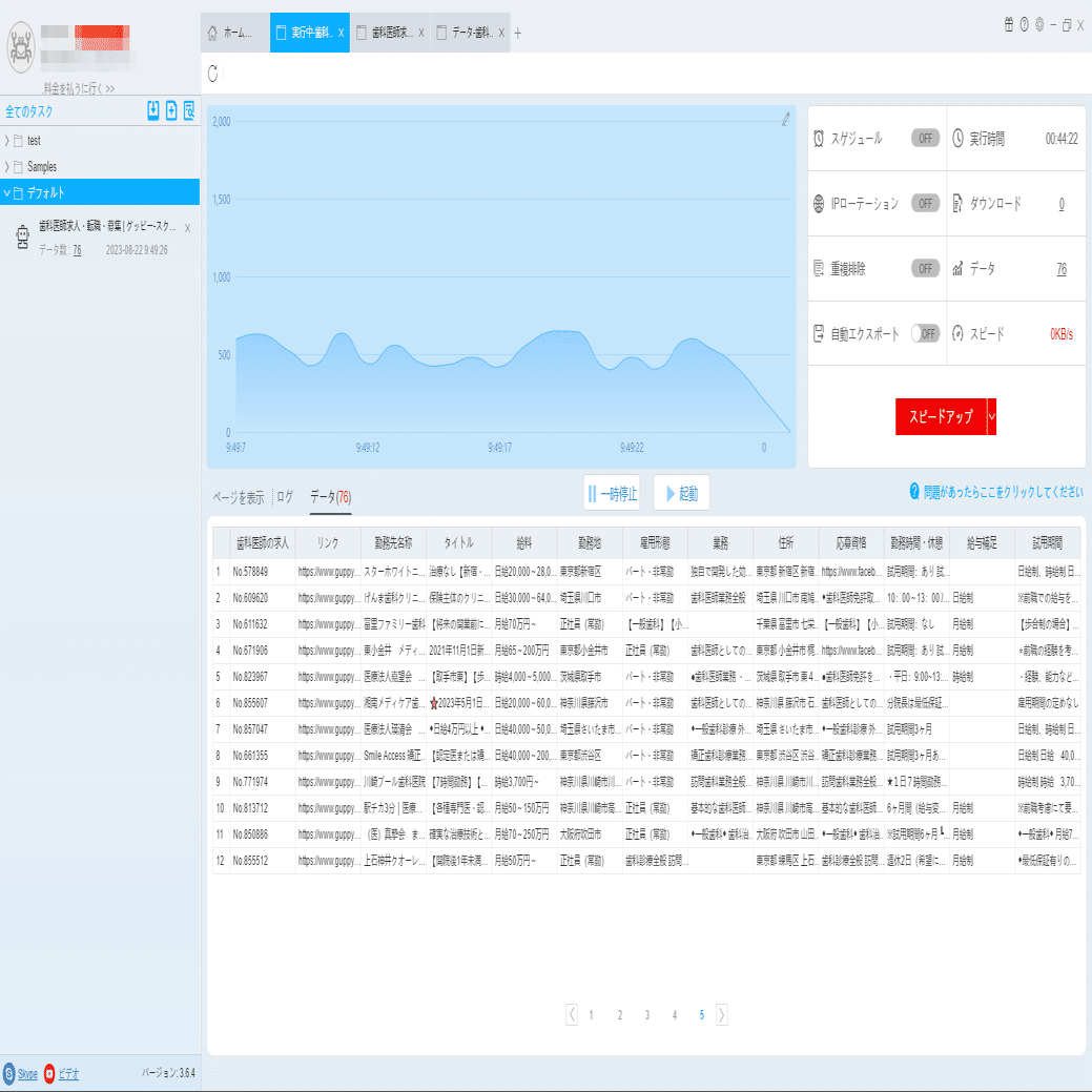 必要に応じて、スケジュール、アンチブロック、自動エクスポート、写真のダウンロード、スピードブーストを設定できます。サーバーに負荷しないように、遅延時間を設定してください。5秒以上を推薦します。スクレイピングタスクを配置する方法については、下記のチュートリアルをご参照ください。