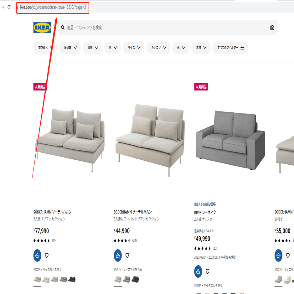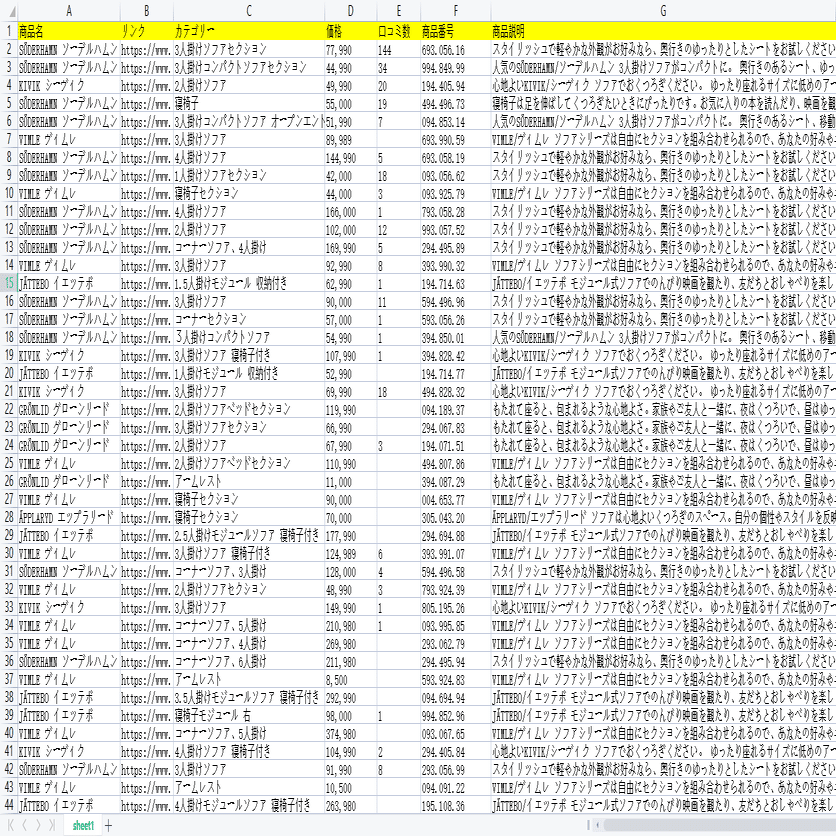 家具・ソファ!イケア(IKEA)から商品の情報をスクレイピングする