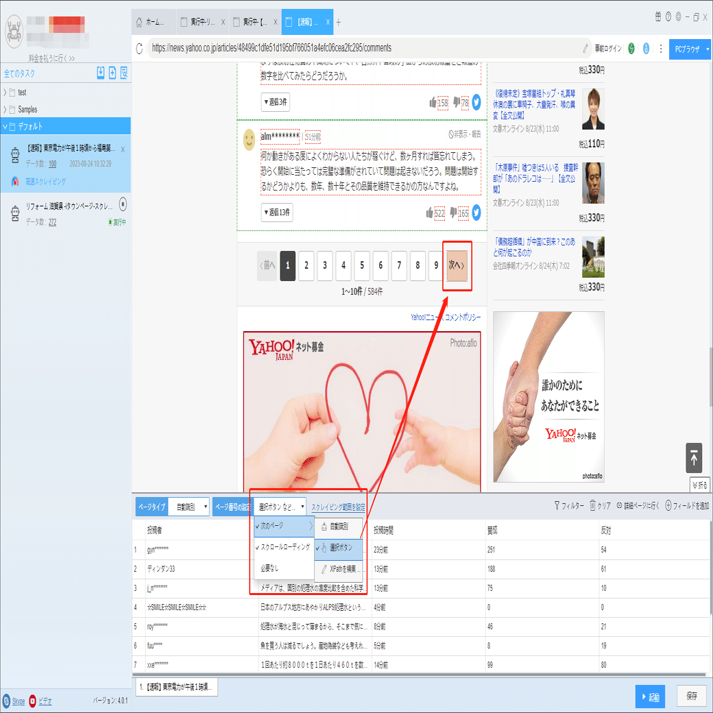 ScrapeStormは自動的にリスト要素とページボタンを識別できます。もし識別誤差が発生する時、手動でページボタンを選択してください。下記のチュートリアルも参照してください。