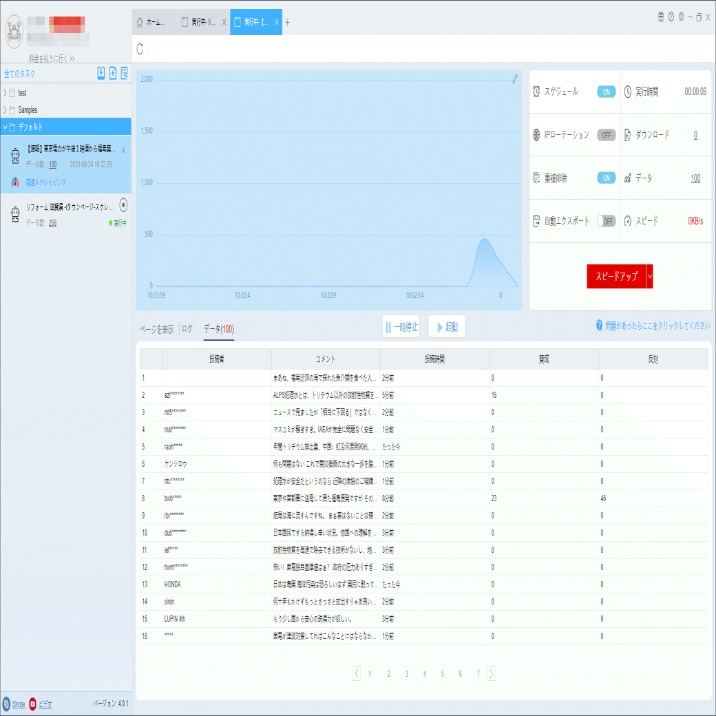 (3)サーバーに負荷しないように、遅延時間を設定してください。5秒以上を推薦します。スクレイピングタスクを配置する方法については、下記のチュートリアルをご参照ください。