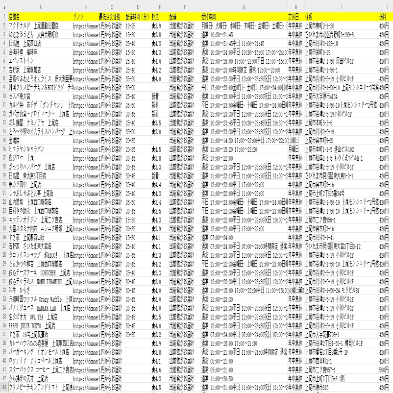 デリバリー・料理!出前館から店舗の情報をスクレイピングする