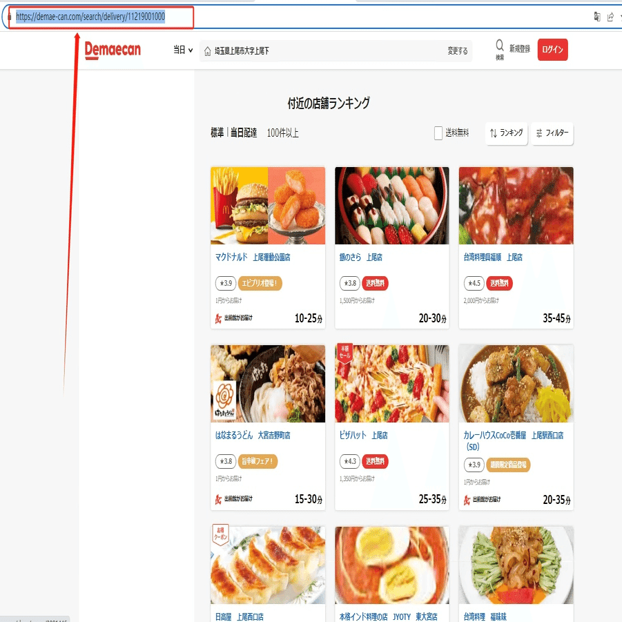 今回はある住所付近の店舗ランキング一覧ページのスクレイピング方法を紹介します。まず、URLをコピーしてください。
