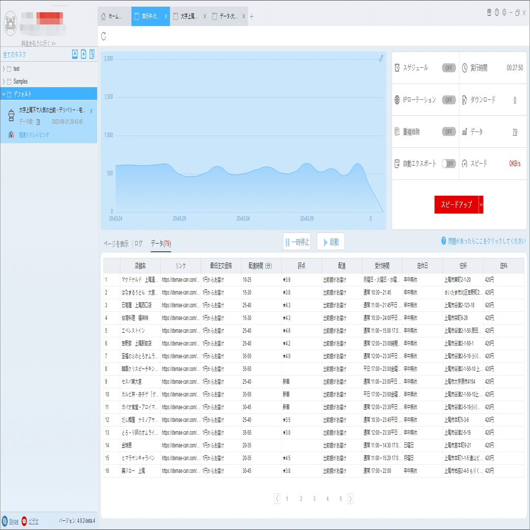 必要に応じて、スケジュール、アンチブロック、自動エクスポート、写真のダウンロード、スピードブーストを設定できます。サーバーに負荷しないように、遅延時間を設定してください。5秒以上を推薦します。スクレイピングタスクを配置する方法については、下記のチュートリアルをご参照ください。