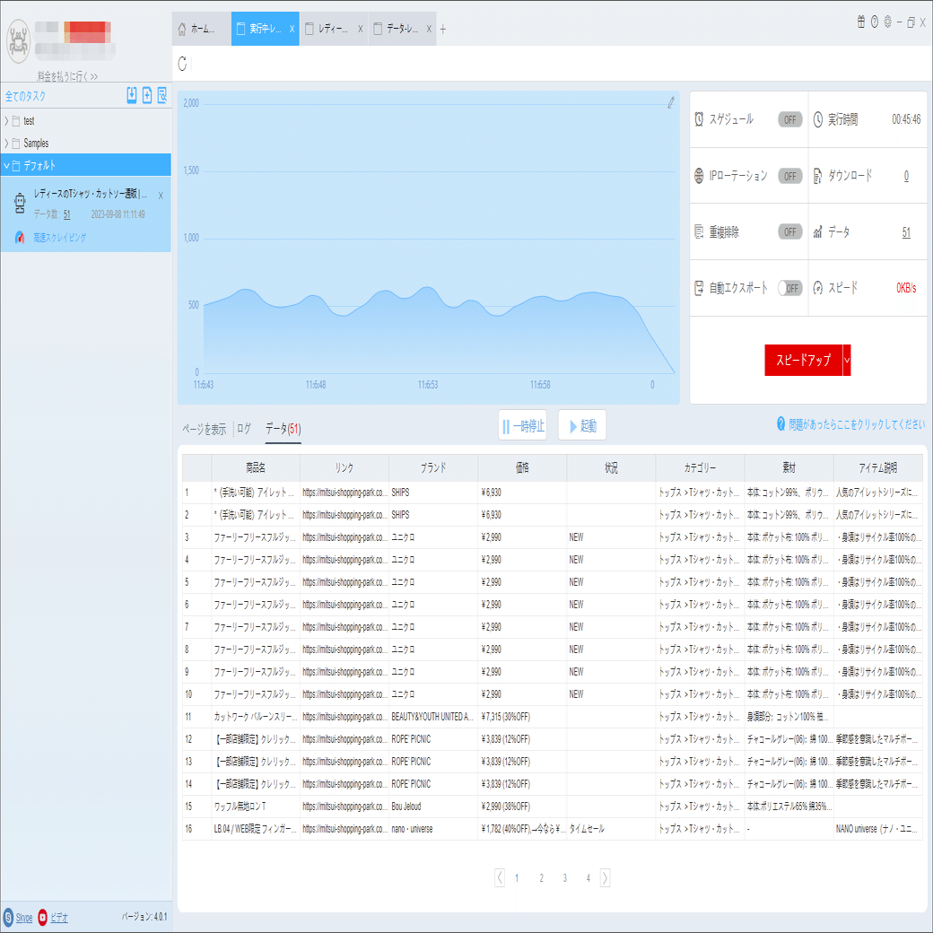 必要に応じて、スケジュール、アンチブロック、自動エクスポート、写真のダウンロード、スピードブーストを設定できます。サーバーに負荷しないように、遅延時間を設定してください。5秒以上を推薦します。スクレイピングタスクを配置する方法については、下記のチュートリアルをご参照ください。