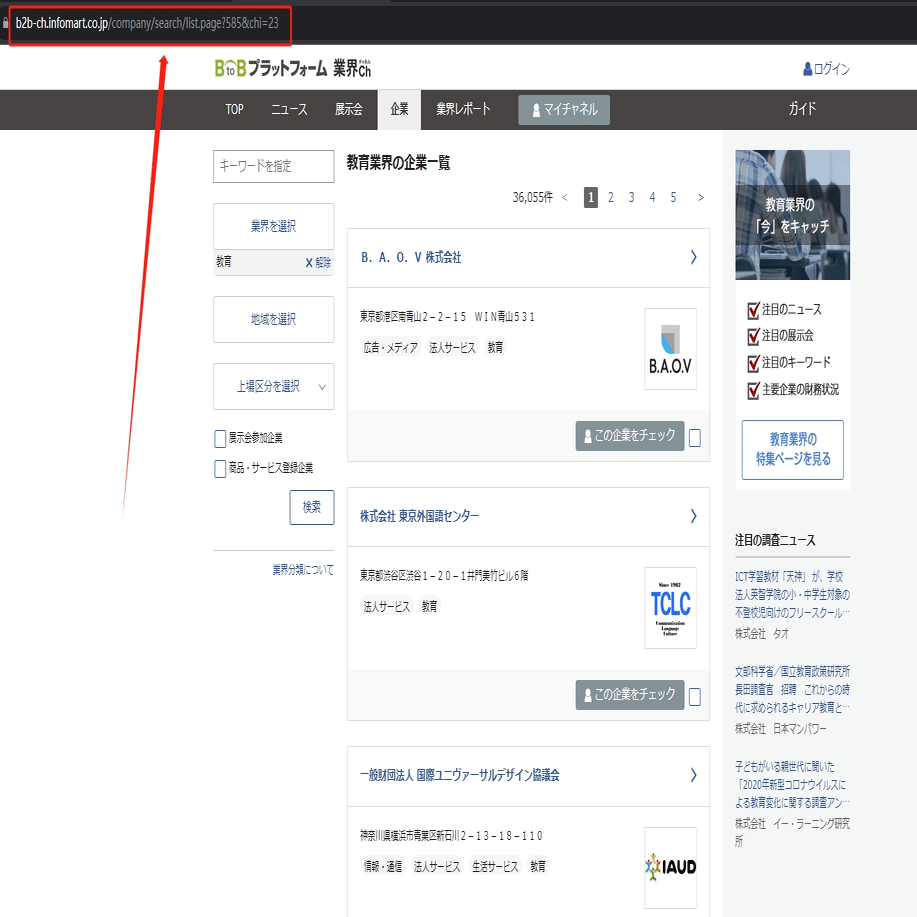 今回は教育業界の企業一覧ページのスクレイピング方法を紹介します。まず、URLをコピーしてください。