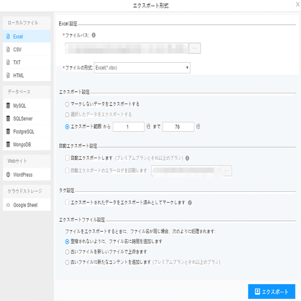 ScrapeStormは、Excel、csv、html、txt、データベース、ローカルなどさまざまなエクスポート方法を提供します。ライトプラン以上のユーザーは、WordPressに直接投稿することもできます。