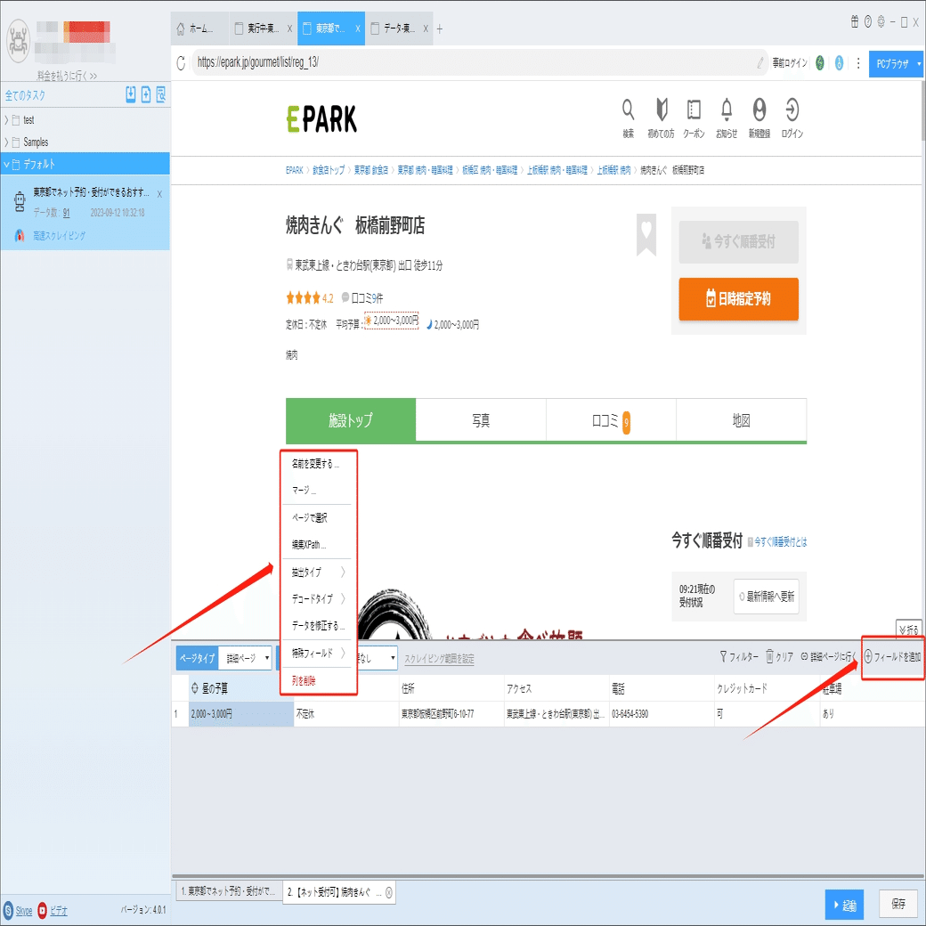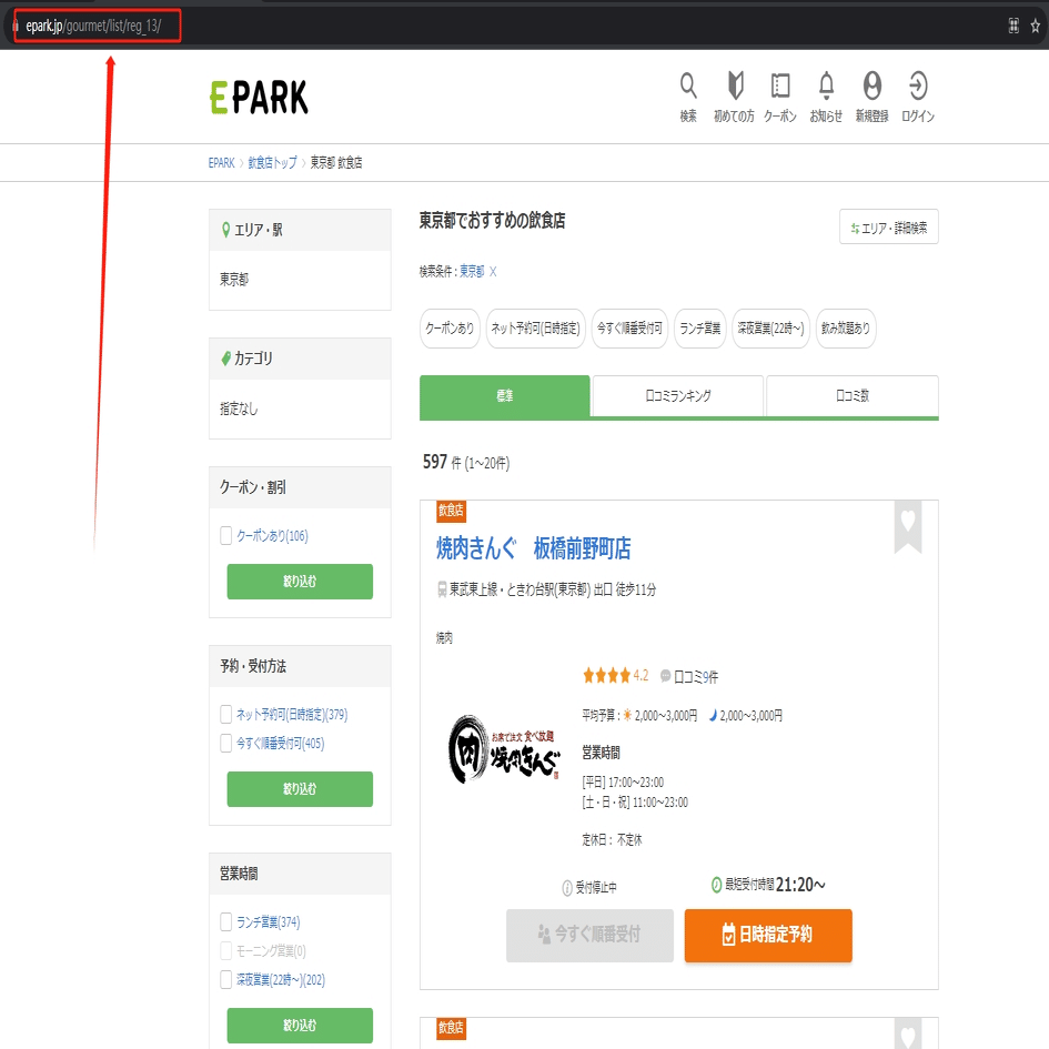 飲食店!Eparkから人気レストランの情報をスクレイピングする