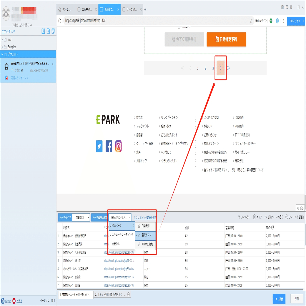 ScrapeStormは自動的にリスト要素とページボタンを識別できます。もし識別誤差が発生する時、手動でページボタンを選択してください。下記のチュートリアルも参照してください。