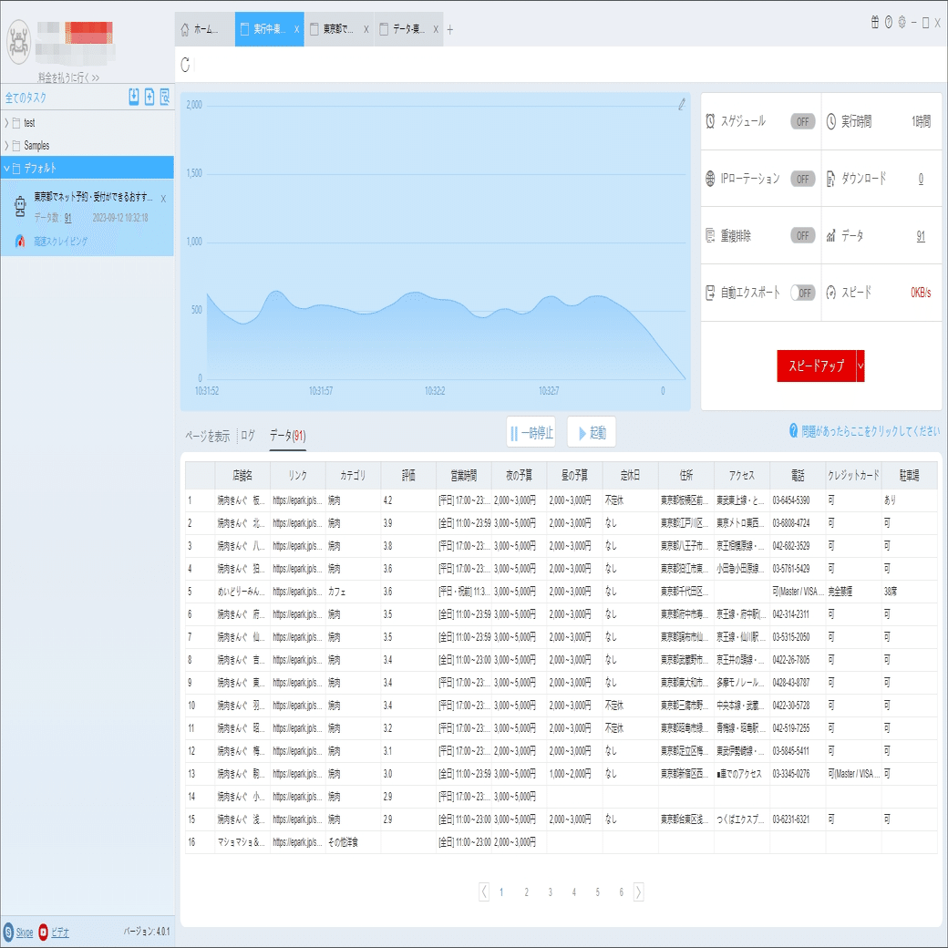 必要に応じて、スケジュール、アンチブロック、自動エクスポート、写真のダウンロード、スピードブーストを設定できます。サーバーに負荷しないように、遅延時間を設定してください。5秒以上を推薦します。スクレイピングタスクを配置する方法については、下記のチュートリアルをご参照ください。