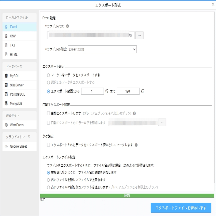 ScrapeStormは、Excel、csv、html、txt、データベース、ローカルなどさまざまなエクスポート方法を提供します。抽出結果のエクスポート方法の詳細には下記のチュートリアルをご参照ください。