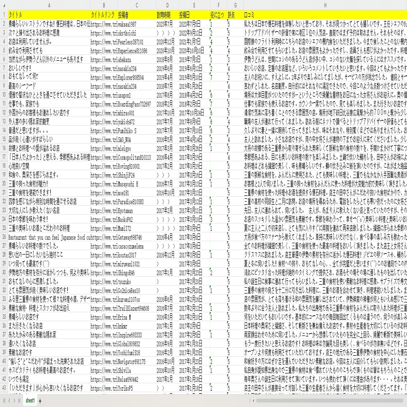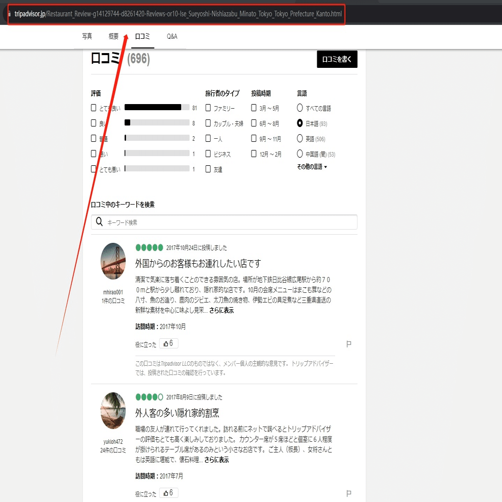 グルメ・食生活!Tripadvisorからお店の口コミをスクレイピング