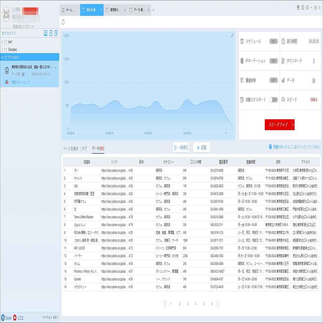 必要に応じて、スケジュール、アンチブロック、自動エクスポート、写真のダウンロード、スピードブーストを設定できます。サーバーに負荷しないように、遅延時間を設定してください。5秒以上を推薦します。スクレイピングタスクを配置する方法については、下記のチュートリアルをご参照ください。