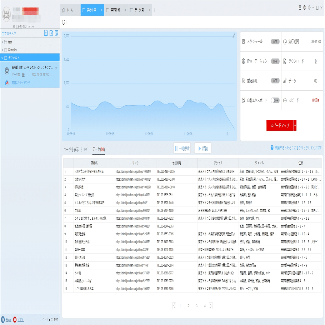 必要に応じて、スケジュール、アンチブロック、自動エクスポート、写真のダウンロード、スピードブーストを設定できます。サーバーに負荷しないように、遅延時間を設定してください。5秒以上を推薦します。スクレイピングタスクを配置する方法については、下記のチュートリアルをご参照ください。