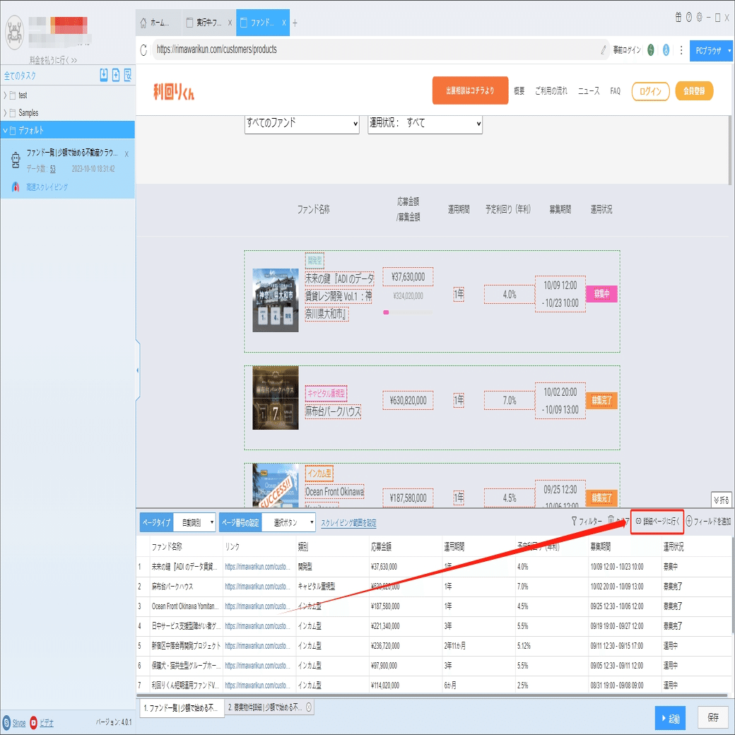 不動産投資!利回りくんからファンド情報をスクレイピングする
