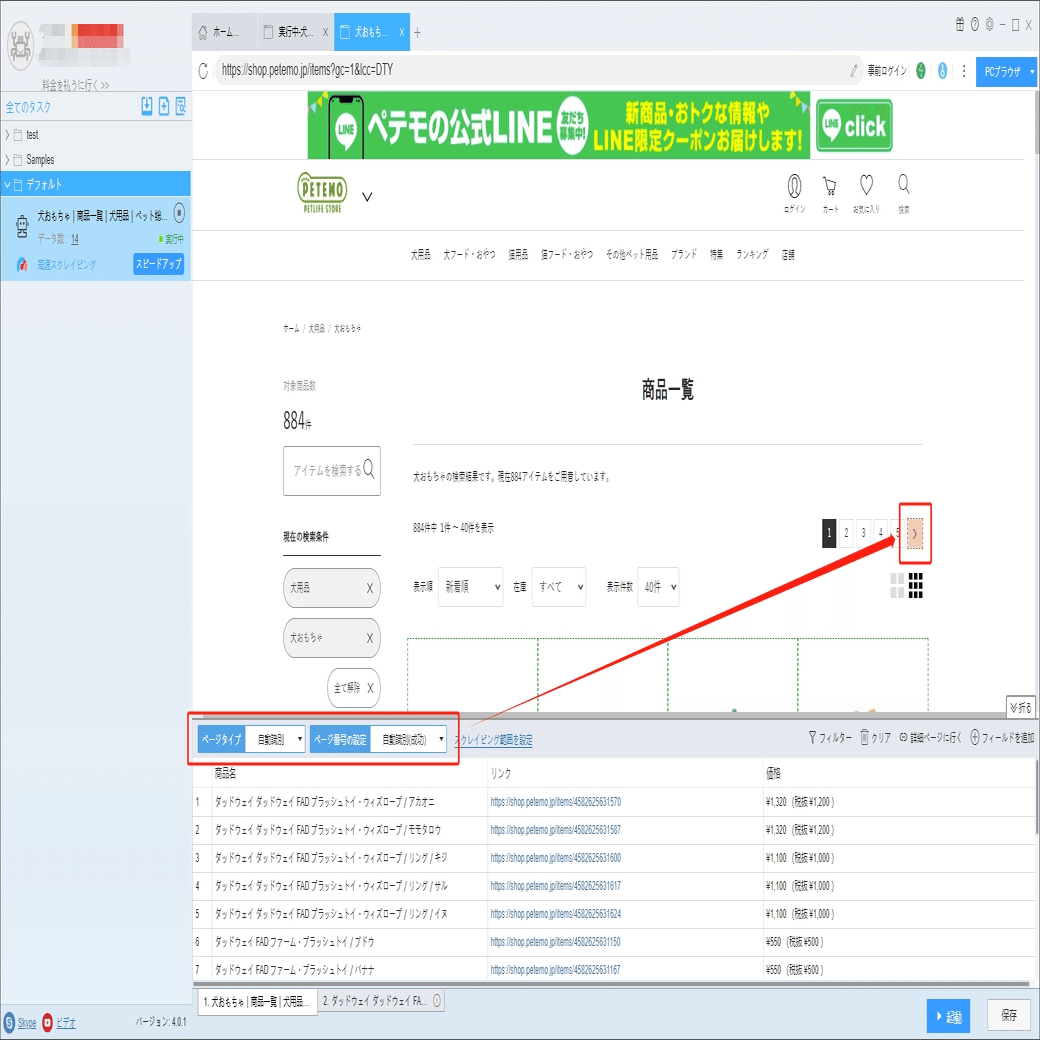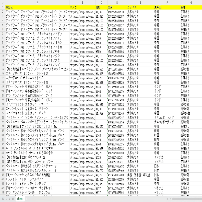 ペット!ペテモオンラインストアから商品の情報をスクレイピング