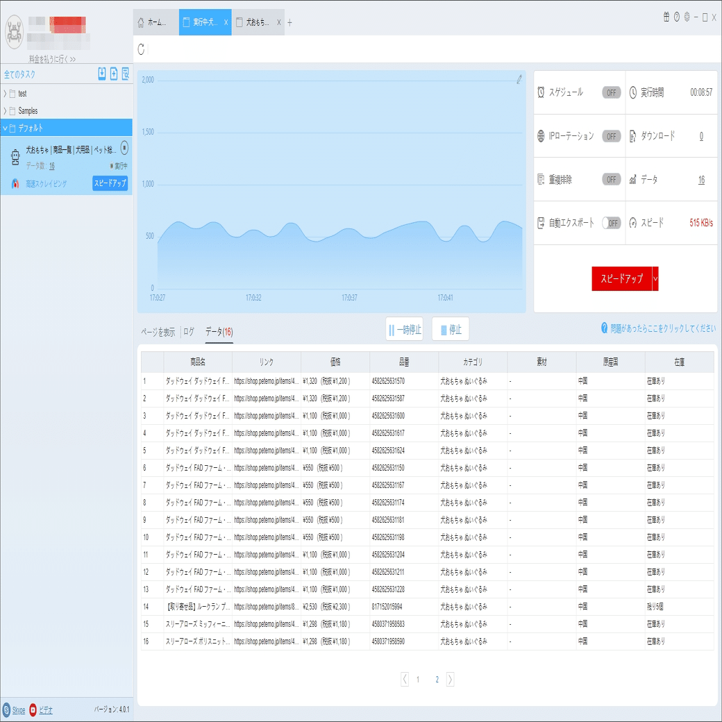 必要に応じて、スケジュール、アンチブロック、自動エクスポート、写真のダウンロード、スピードブーストを設定できます。サーバーに負荷しないように、遅延時間を設定してください。5秒以上を推薦します。スクレイピングタスクを配置する方法については、下記のチュートリアルをご参照ください。