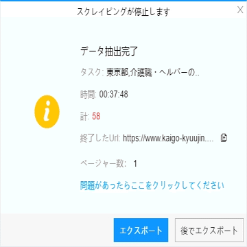 (2)しばらくすると、データがスクレイピングされる。