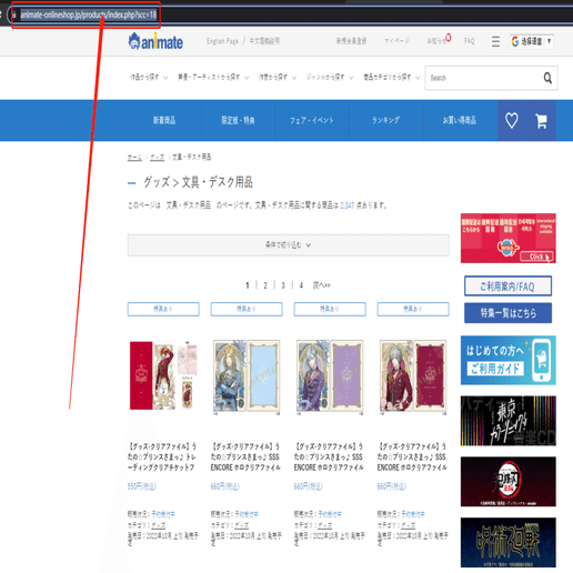 ネット通販!アニメイトから商品の情報をスクレイピングする