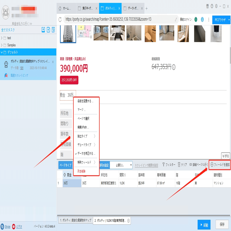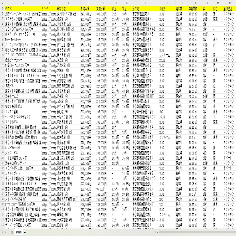 不動産・賃貸!ポルティ賃料査定から物件の情報をスクレイピング