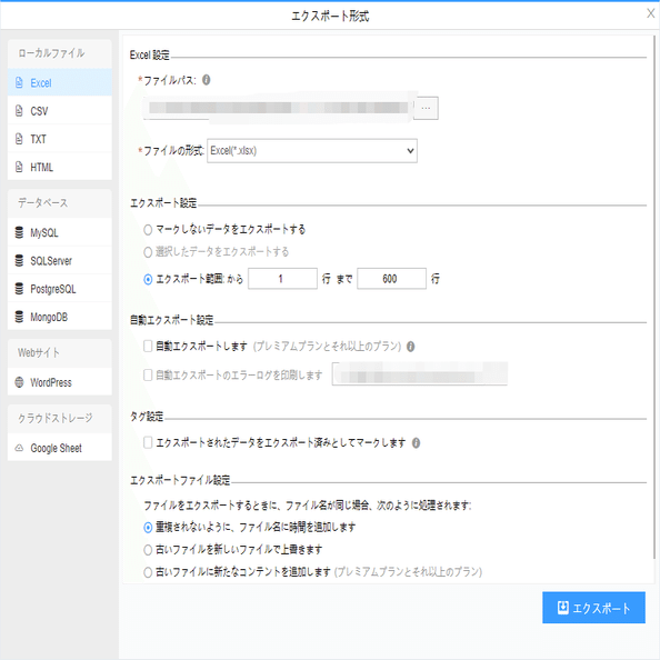 ScrapeStormは、Excel、csv、html、txt、データベース、ローカルなどさまざまなエクスポート方法を提供します。ライトプラン以上のユーザーは、WordPressに直接投稿することもできます。