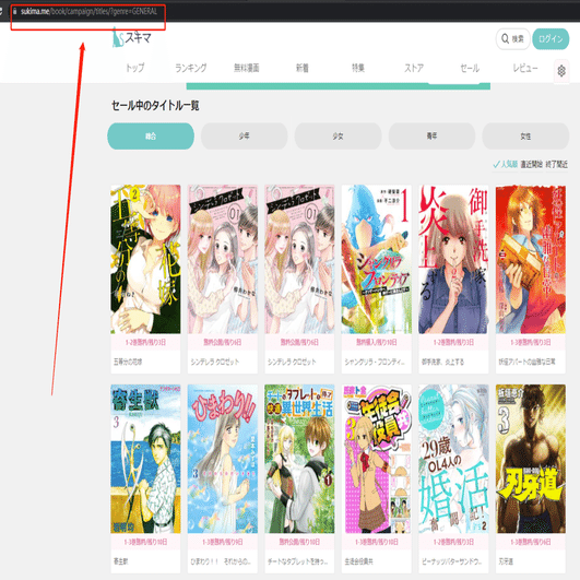 今回はセール中のタイトル一覧ページを例として、スクレイピング方法を紹介します。まず、URLをコピーしてください。