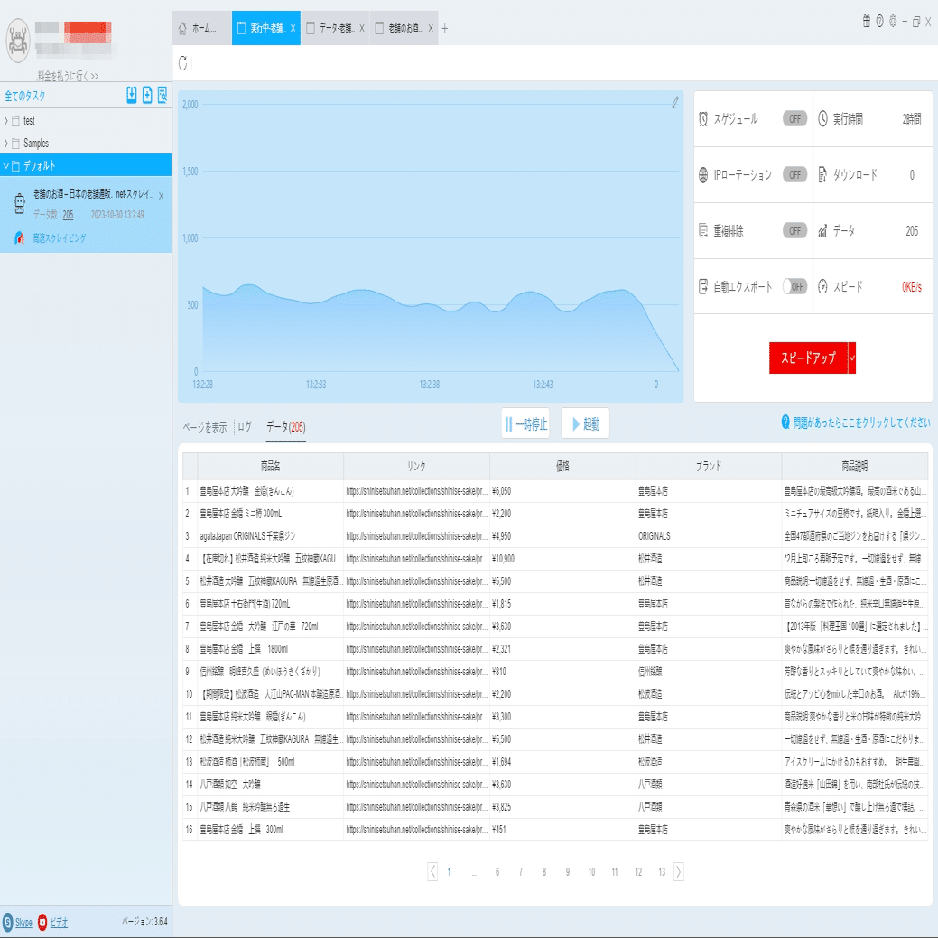必要に応じて、スケジュール、アンチブロック、自動エクスポート、写真のダウンロード、スピードブーストを設定できます。サーバーに負荷しないように、遅延時間を設定してください。5秒以上を推薦します。スクレイピングタスクを配置する方法については、下記のチュートリアルをご参照ください。