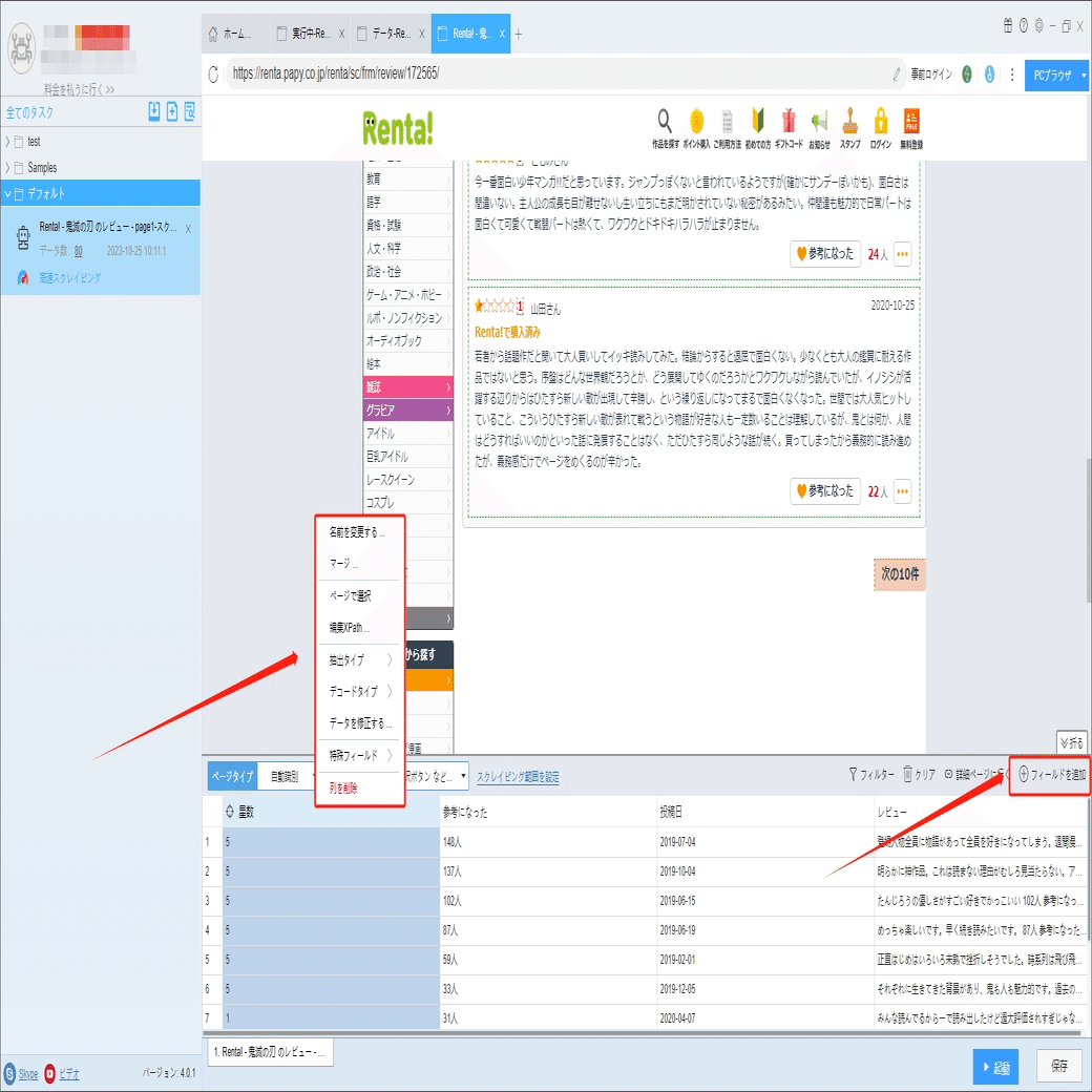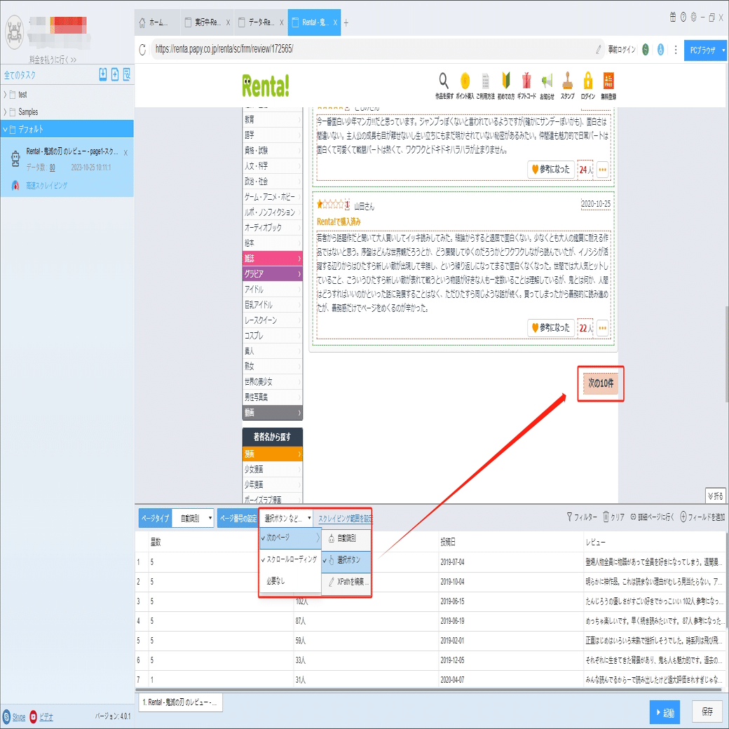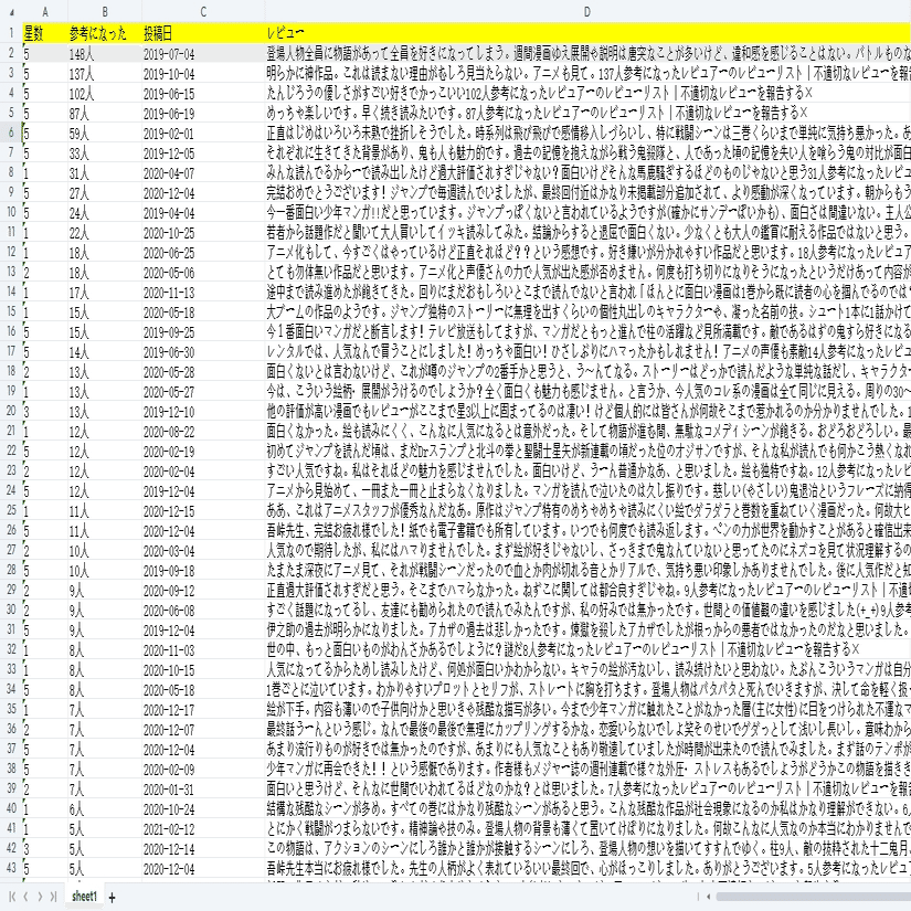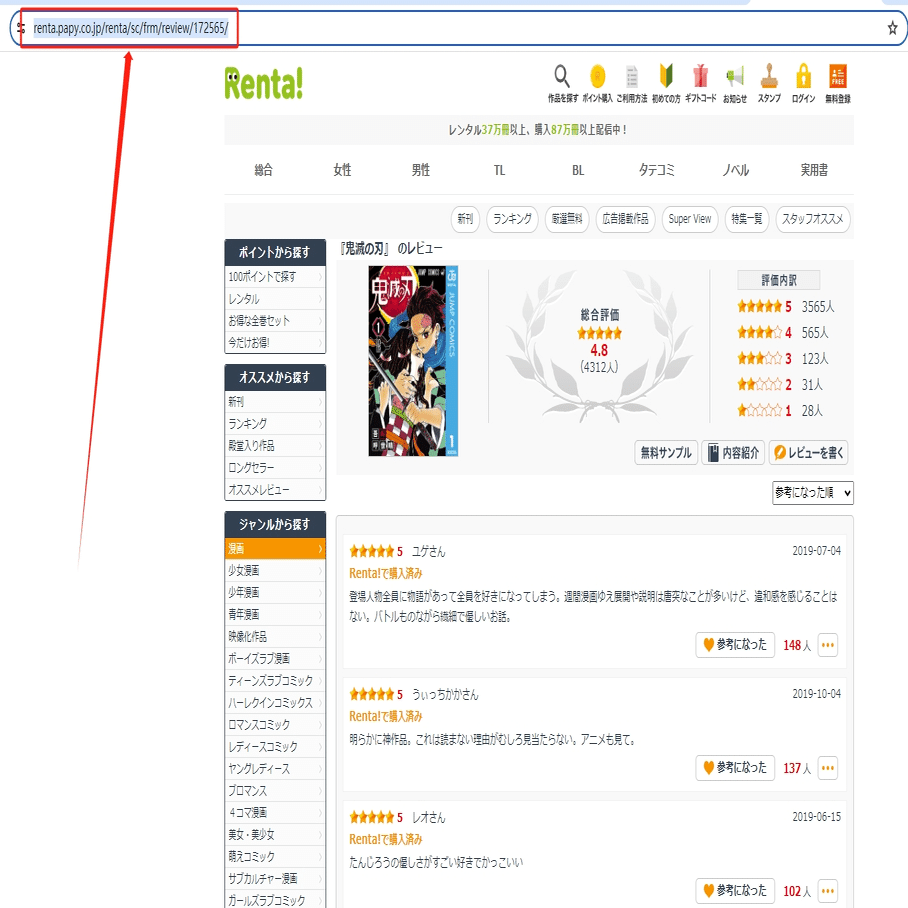 電子書籍・コミック!Rentaから漫画のレビューをスクレイピング