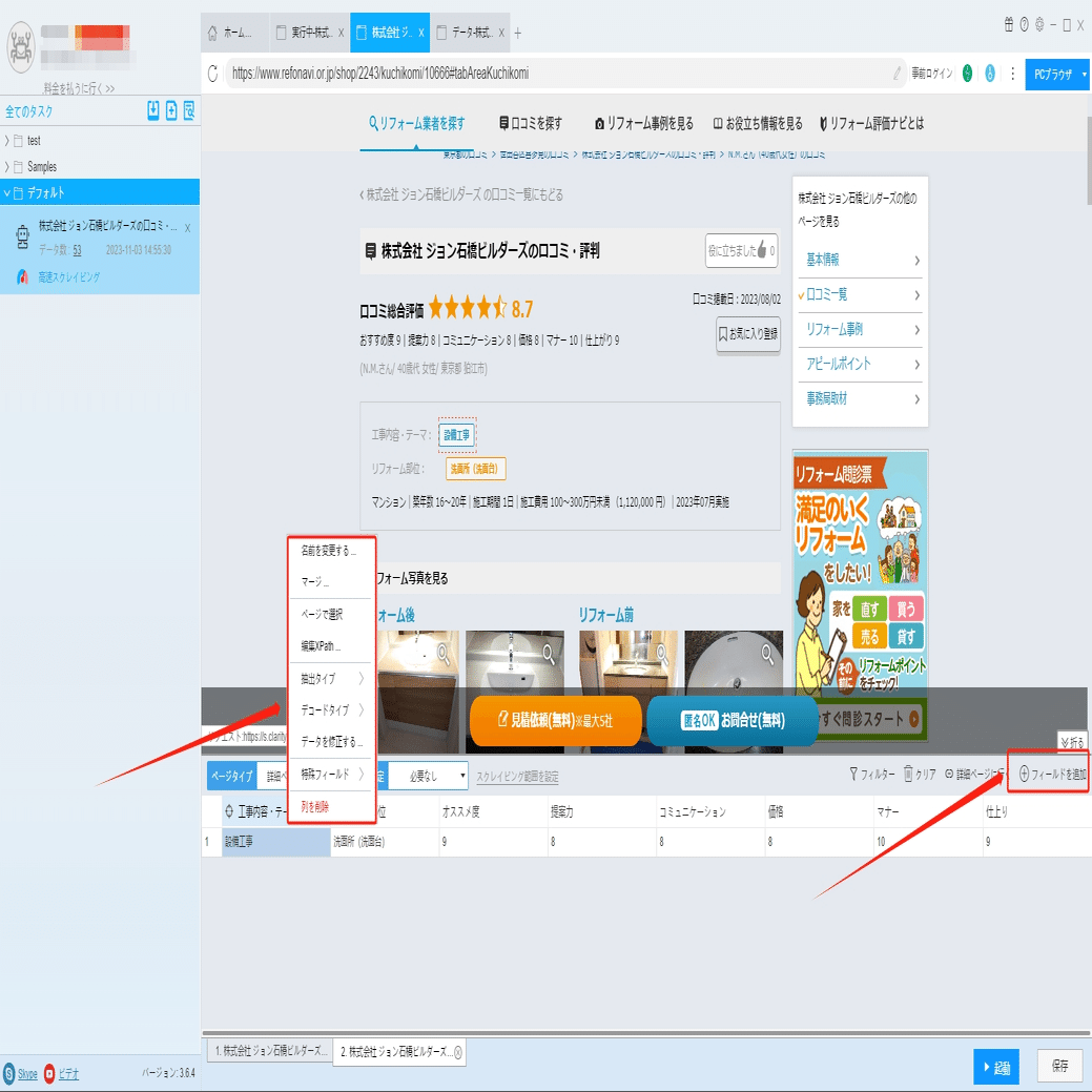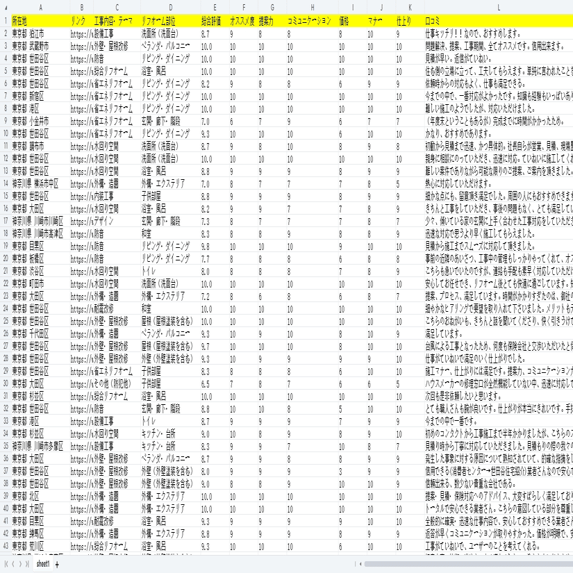 クチコミ!リフォーム評価ナビから業者の評価をスクレイピング