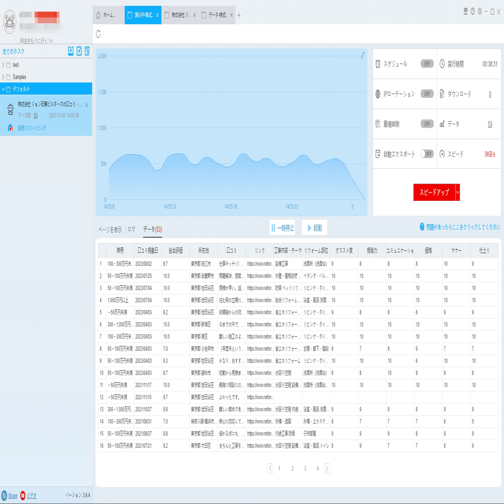 必要に応じて、スケジュール、アンチブロック、自動エクスポート、写真のダウンロード、スピードブーストを設定できます。サーバーに負荷しないように、遅延時間を設定してください。5秒以上を推薦します。スクレイピングタスクを配置する方法については、下記のチュートリアルをご参照ください。