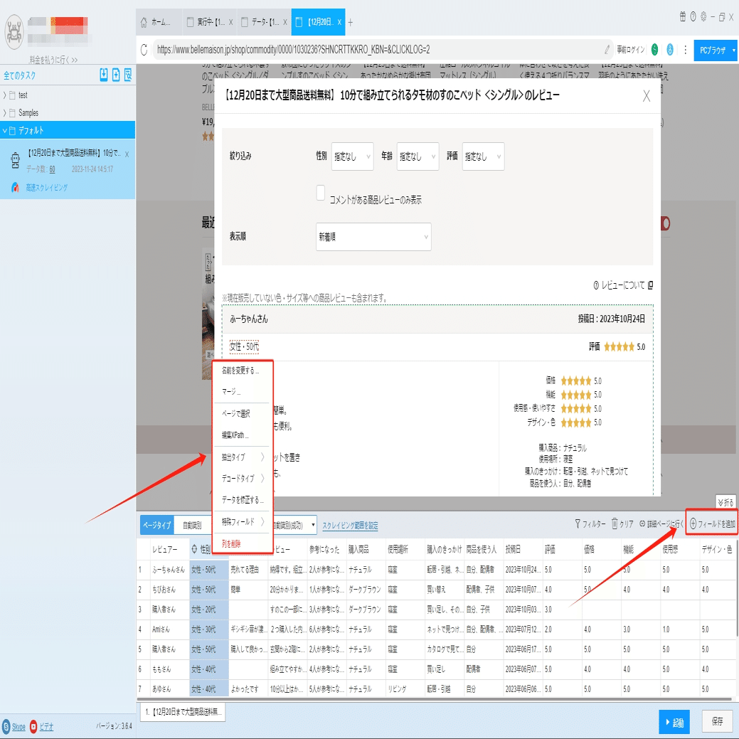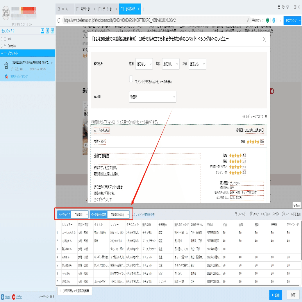 ネット通販!ベルメゾンから商品のレビューをスクレイピングする