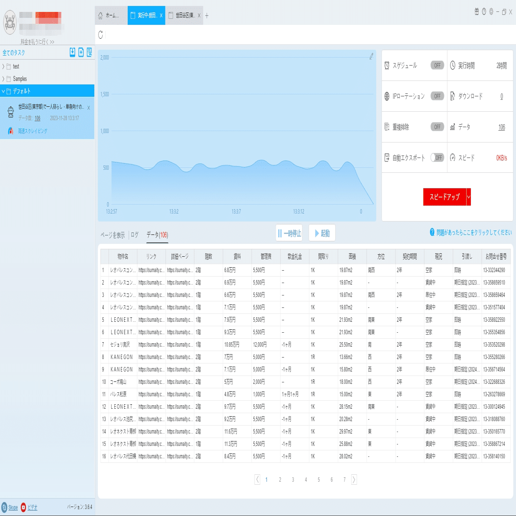 必要に応じて、スケジュール、アンチブロック、自動エクスポート、写真のダウンロード、スピードブーストを設定できます。サーバーに負荷しないように、遅延時間を設定してください。5秒以上を推薦します。スクレイピングタスクを配置する方法については、下記のチュートリアルをご参照ください。