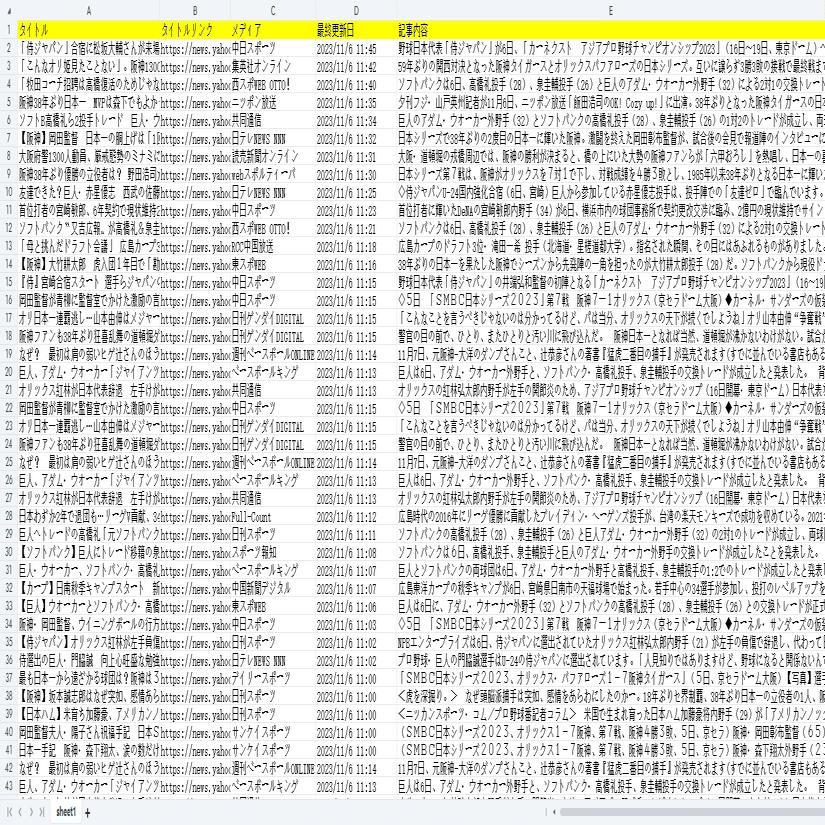スポーツ!スポーツナビから野球に関するニュースをスクレイピング