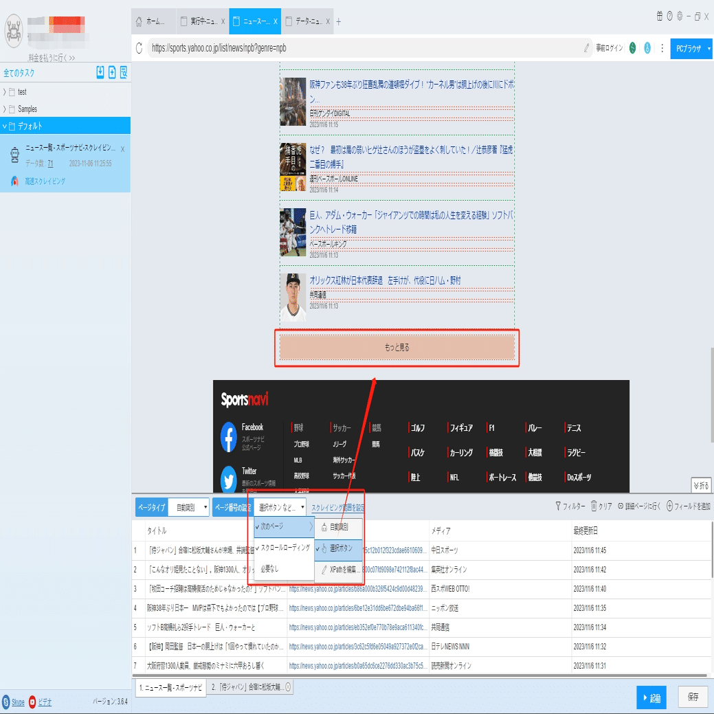 ScrapeStormは自動的にリスト要素とページボタンを識別できます。もし識別誤差が発生する時、手動でページボタンを選択してください。下記のチュートリアルも参照してください。