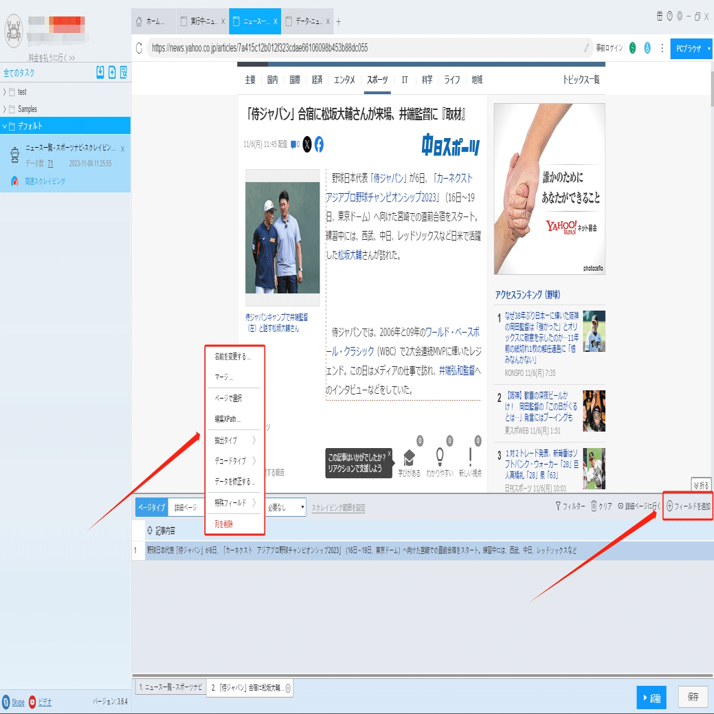 「フィールドを追加」ボタンをクリックして、画面に必要な要素を選択、データが自動的に抽出されます。また、必要に応じてフィールドの名前の変更または削除、結合できます。