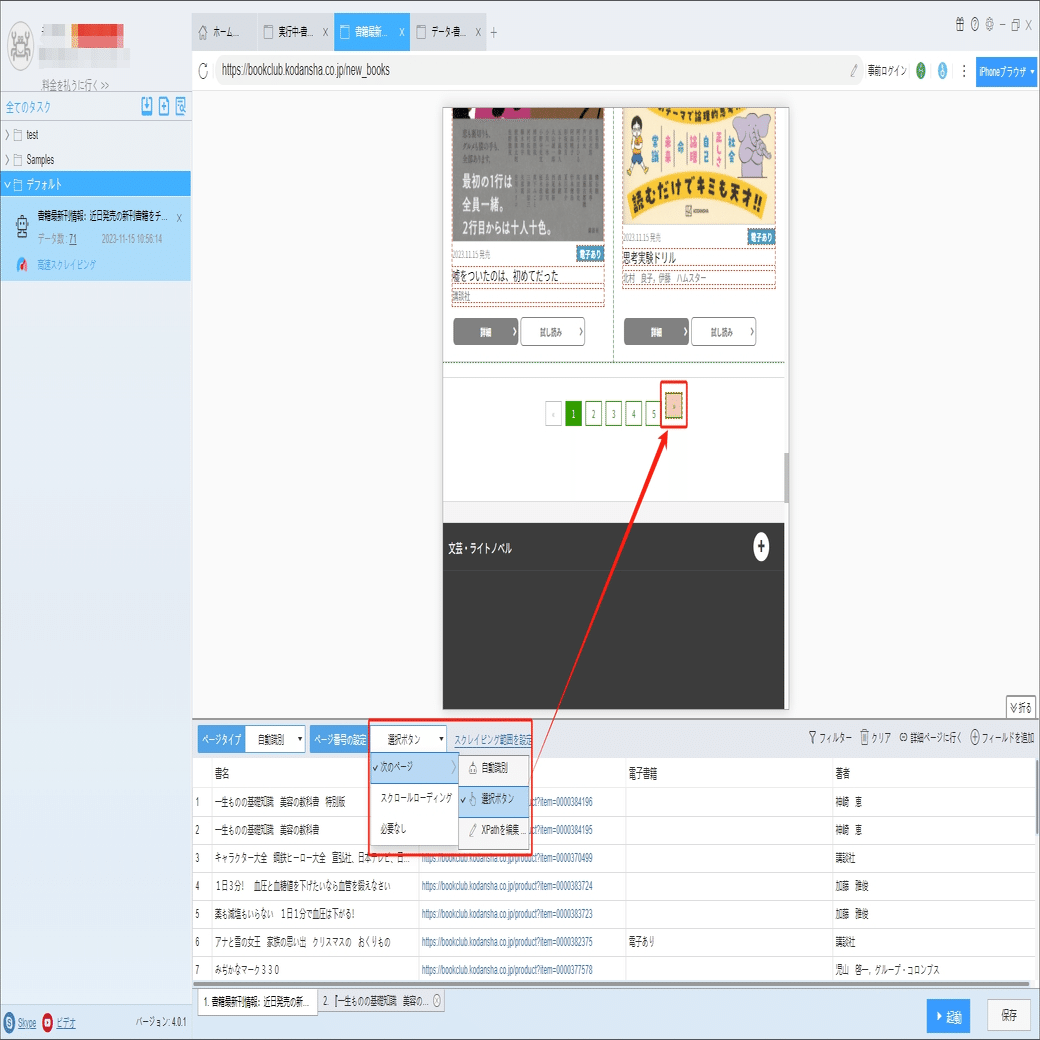 ScrapeStormは自動的にリスト要素とページボタンを識別できます。今回は手動でページボタンを識別します。下記のチュートリアルも参照してください。