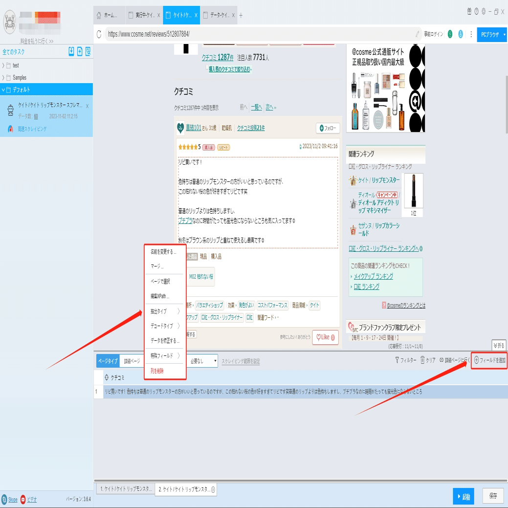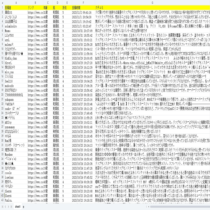 評価・レビュー!@cosmeからコスメのクチコミをスクレイピング